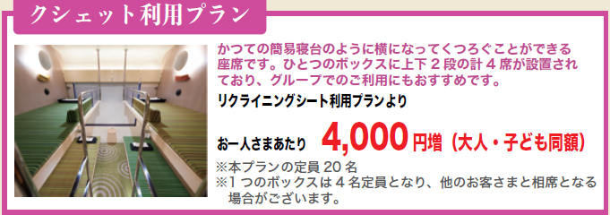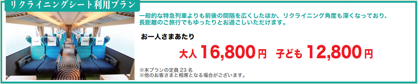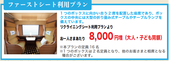 | 朝:× 昼:〇 夕:× | ➀大人2名(京都駅) ¥43,100 ➀大人2名(新大阪駅) ¥43,100 ➀大人2名(大阪駅) ¥43,100 ➁大人3名(京都駅) ¥59,900 ➁大人3名(新大阪駅) ¥59,900 ➁大人3名(大阪駅) ¥59,900 ➂大人2名・子ども1名(京都駅) ¥55,900 ➂大人2名・子ども1名(新大阪駅) ¥55,900 ➂大人2名・子ども1名(京都駅) ¥55,900 ④大人4名(京都駅) ¥76,700 ④大人4名(新大阪駅) ¥76,700 ④大人4名(大阪駅) ¥76,700 ⑤大人2名・子ども2名(京都駅) ¥68,700 ⑤大人2名・子ども2名(新大阪駅) ¥68,700 ⑤大人2名・子ども2名(大阪駅) ¥68,700 ⑥大人3名・子ども1名(京都駅」 ¥72,700 ⑥大人3名・子ども1名(新大阪駅) ¥72,700 ⑥大人3名・子ども1名(大阪駅) ¥72,700 |