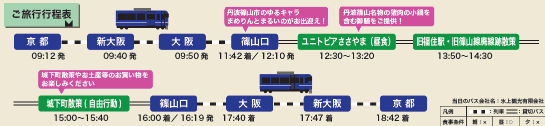 | 朝:× 昼:〇 夕:× | 大人1名(京都駅) ¥28,800 大人1名(新大阪駅) ¥28,800 大人1名(大阪駅) ¥28,800 |