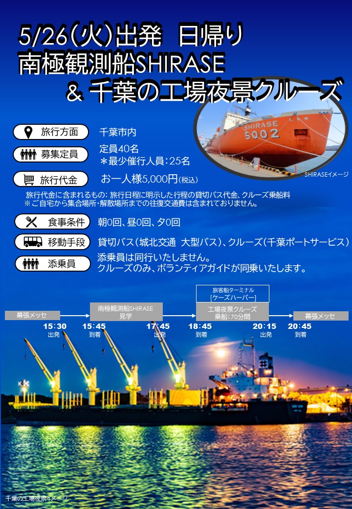 コース③5月26日(火)出発 日帰り【南極観測船SHIRASE&千葉の工場夜景クルーズ】