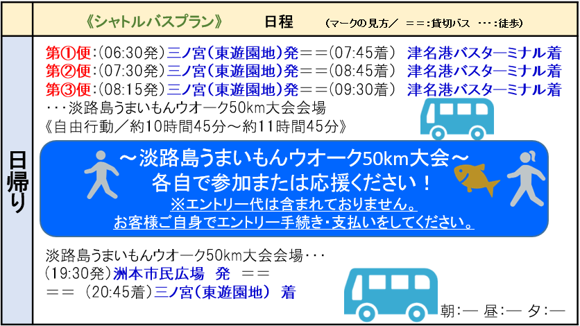 ※往路「第③便」は、ウォークエントリー「25kmショートコース」参加の方に限ります。(※ウォークは、