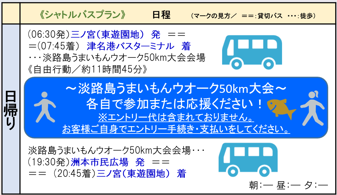 ■【シャトルバスプラン】淡路島うまいもんウォーク50km 参加者・応援者用 シャトルバス