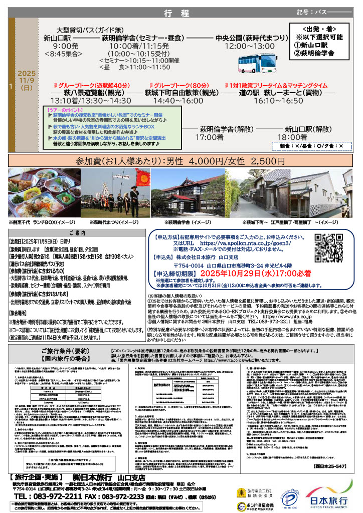 ◆集合場所:「新山口駅」 又は「萩明倫学舎」