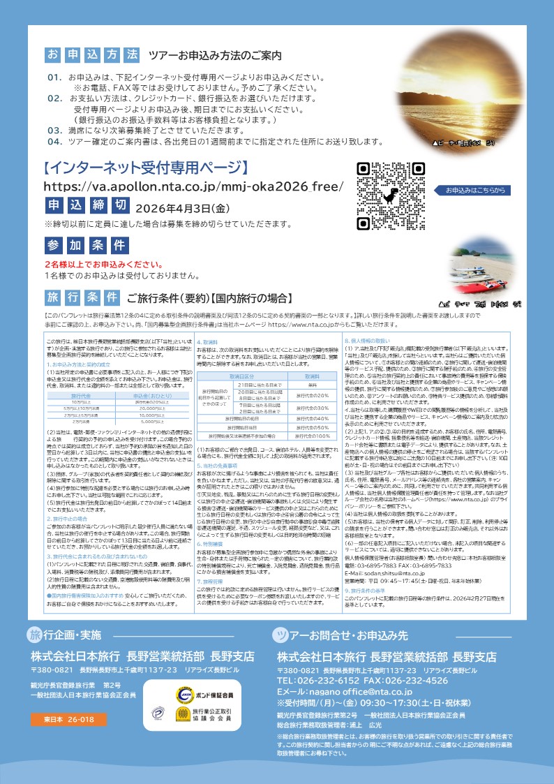 〇(株)日本旅行長野支店 メール:nagano_office@nta.co.jp