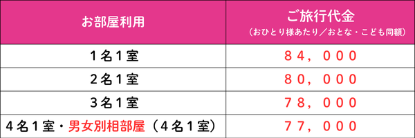 健常の同伴者(=介助者)と同室でお申し込みください。相部屋のご利用はお受けできません。またツアー中は同伴者と必ず一緒に行動してください。
