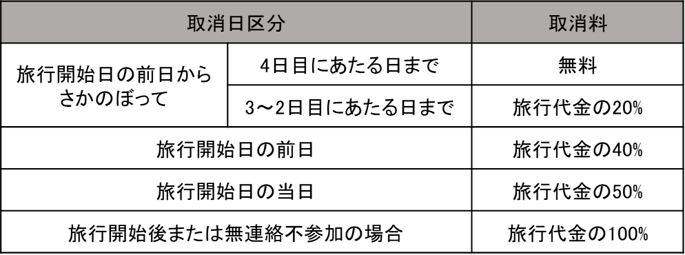 【宿泊プラン取消料】(募集型企画契約)・取消の場合は、以下の取消料が適用となります。