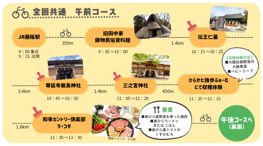 ★藤阪駅での集合から解散まで、サイクルリーダー&添乗員同行で安心!