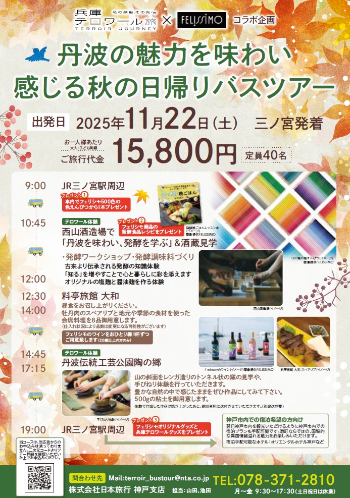 丹波の魅力を味わい感じる秋の日帰りバスツアー【西日本25-254】 |