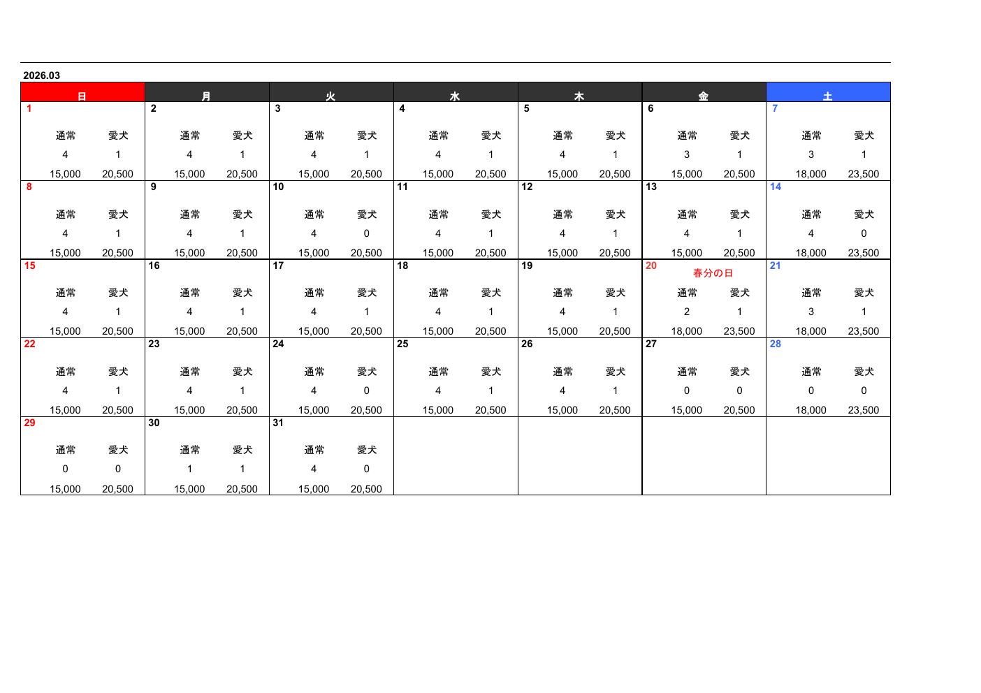下記の表は、3月13日 18:00 現在の空室状況です。