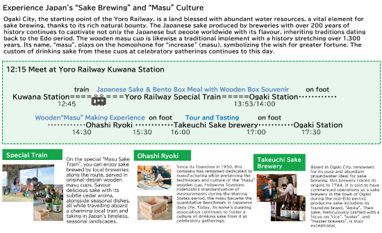 【Included】 1-day pass for Yoro Railway trains, lunch, 2 sake bottles, 1 masu cup, guide, activities included in the itinerary